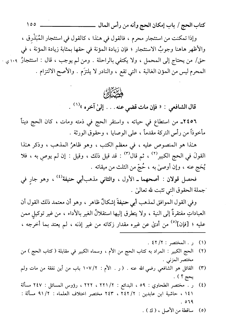 (4) ر. مختصر الطحاوي: 59، البدائع: 2/ 221، 222، رؤوس المسائل: 247 مسألة 141، حاشية ابن عابدين: 2/ 242، 243 مختصر اختلاف العلماء: 2/ 91 مسألة: 569.