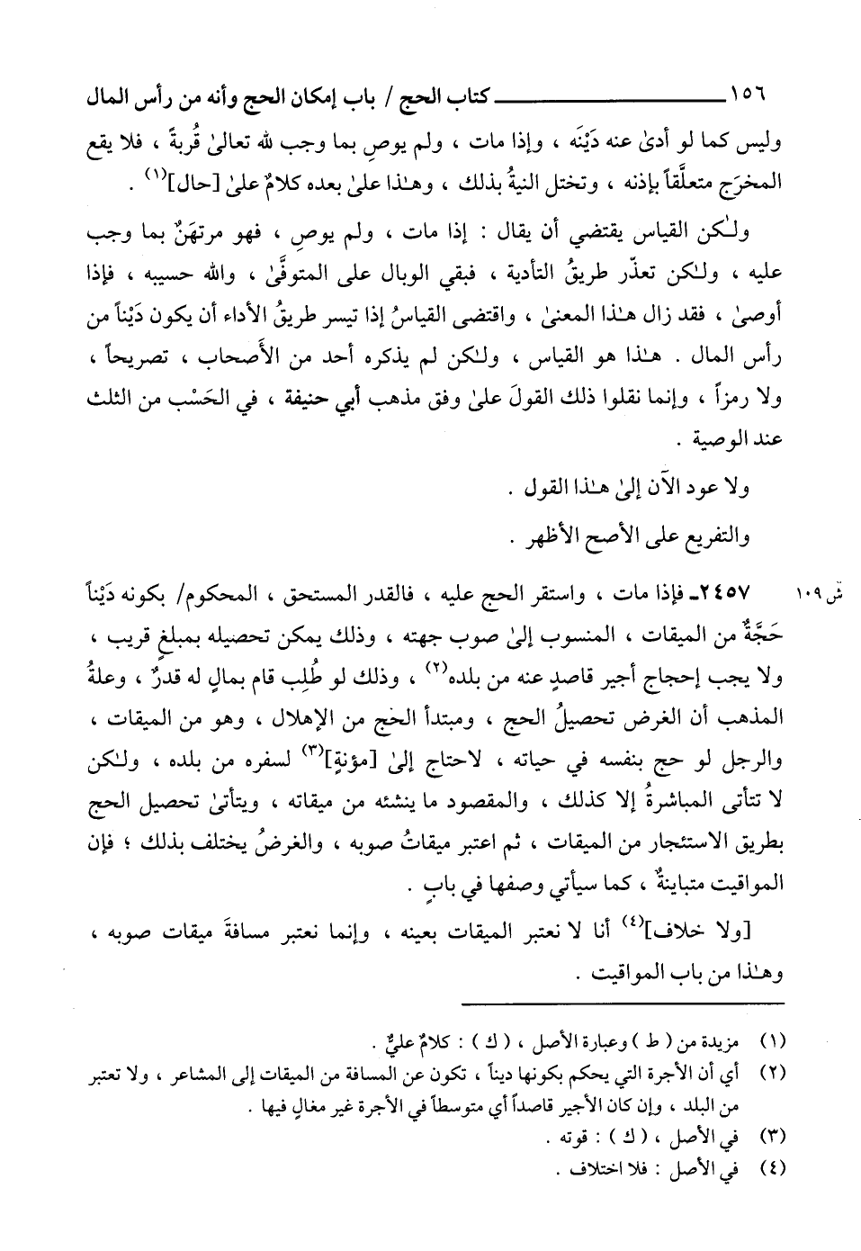 2457 - فإذا مات، واستقر الحج عليه، فالقدر المستحق، المحكوم بكونه دَيْناً حَجَّةٌ من الميقات، المنسوب إلى صوب جهته، وذلك يمكن تحصيله بمبلغٍ قريب، ولا يجب إحجاج أجير قاصدٍ عنه من بلده (2)، وذلك لو طُلِب قام بمالٍ له قدرٌ، وعلةُ المذهب أن الغرض تحصيلُ الحج، ومبتدأ الحج من الإهلال، وهو من الميقات، والرجل لو حج بنفسه في حياته، لاحتاج إلى [مؤنةٍ] (3) لسفره من بلده، ولكن لا تتأتى المباشرةُ إلا كذلك، والمقصود ما ينشئه من ميقاته، ويتأتى تحصيل الحج بطريق الاستئجار من الميقات، ثم اعتبر ميقاتُ صوبه، والغرضُ يختلف بذلك، فإن المواقيت متباينةٌ، كما سيأتي وصفها في بابٍ.