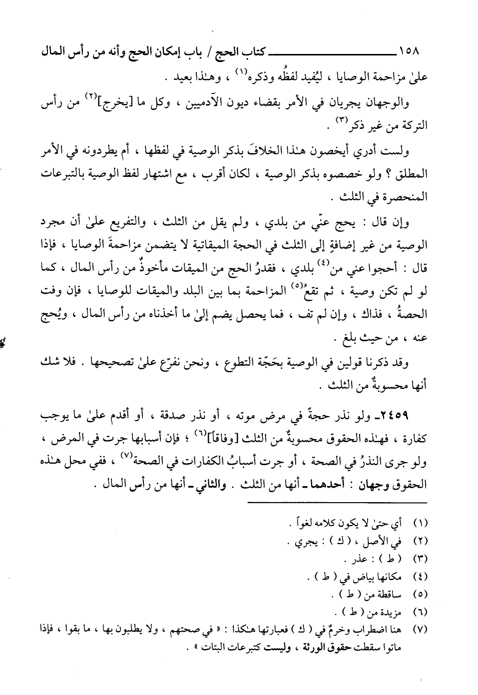 2459 - ولو نذر حجةً في مرض موته، أو نذر صدقة، أو أقدم على ما يوجب كفارة، فهذه الحقوق محسوبةٌ من الثلث [وفاقاً] (6)؛ فإن أسبابها جرت في المرض، ولو جرى النذرُ في الصحة، أو جرت أسبابُ الكفارات في الصحة (7)، ففي محل هذه الحقوق وجهان: أحدهما - أنها من الثلث. والثاني - أنها من رأس المال.
