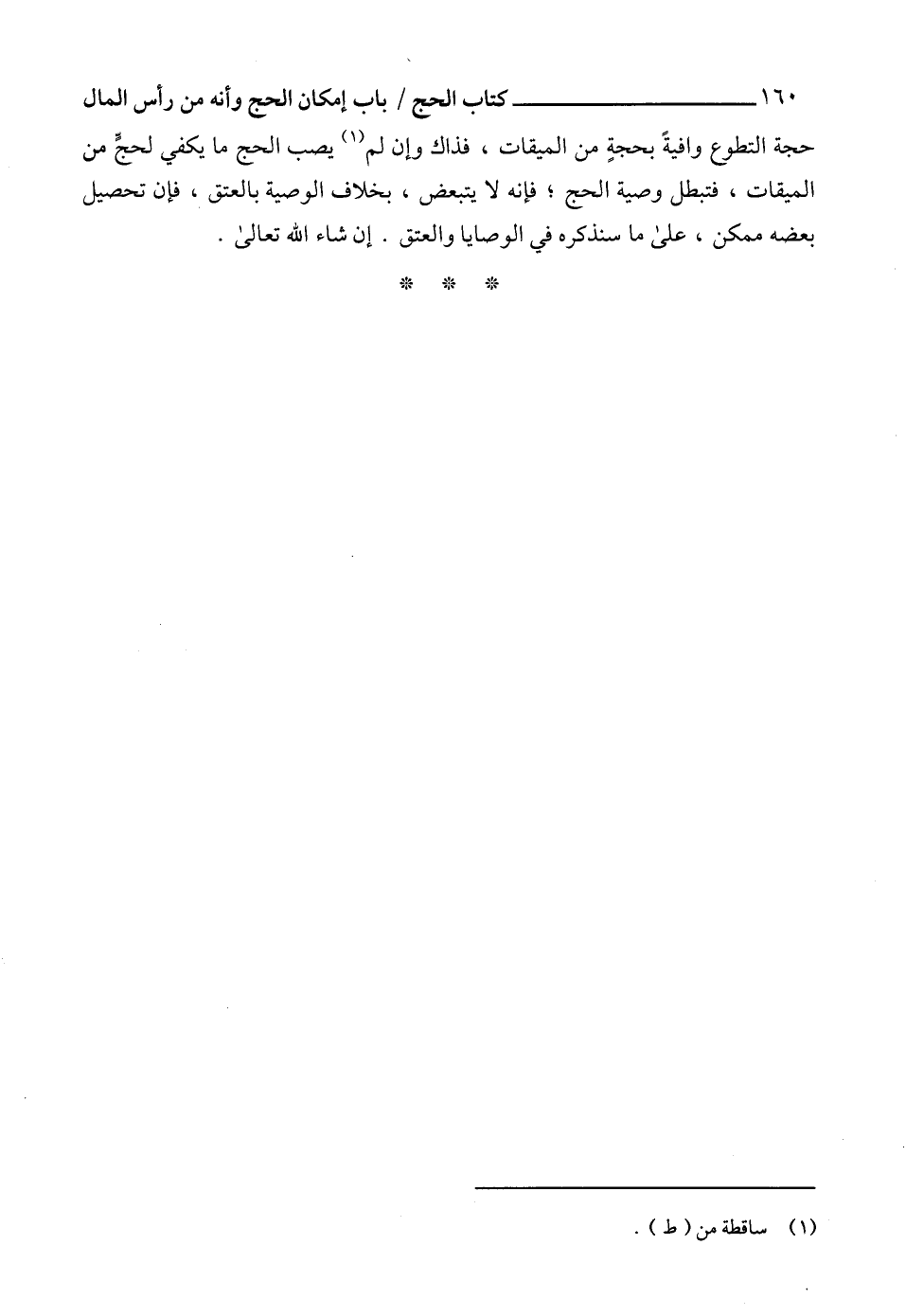 حجة التطوع وافيةً بحجةٍ من الميقات، فذاك وإن لم (1) يصب الحج ما يكفي لحجٍّ من الميقات، فتبطل وصية الحج؛ فإنه لا يتبعض، بخلاف الوصية بالعتق، فإن تحصيل بعضه ممكن، على ما سنذكره في الوصايا والعتق. إن شاء الله تعالى.