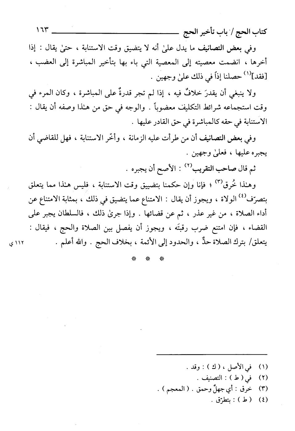 وهذا خُرق (3)؛ فإنا وإن حكمنا بتضييق وقت الاستنابة، فليس هذا مما يتعلق بتصرّف (4) الولاة، ويجوز أن يقال: الامتناع عما يتضيق في ذلك، بمثابة الامتناع عن أداء الصلاة، من غير عذر، ثم عن قضائها. وإذا جرى ذلك، فالسلطان يجبر على القضاء، فإن امتنع ضرب رقبتَه، ويجوز أن يفصل بين الصلاة والحج، فيقال: يتعلق بترك الصلاة حدٌّ، والحدود إلى الأئمة، بخلاف الحج. والله أعلم.