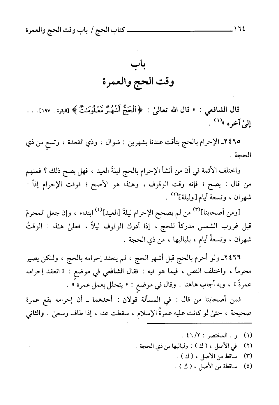 قال الشافعي: " قال الله تعالى: {الْحَجُّ أَشْهُرٌ مَعْلُومَاتٌ} [البقرة: 197] ... إلى آخره " (1).
