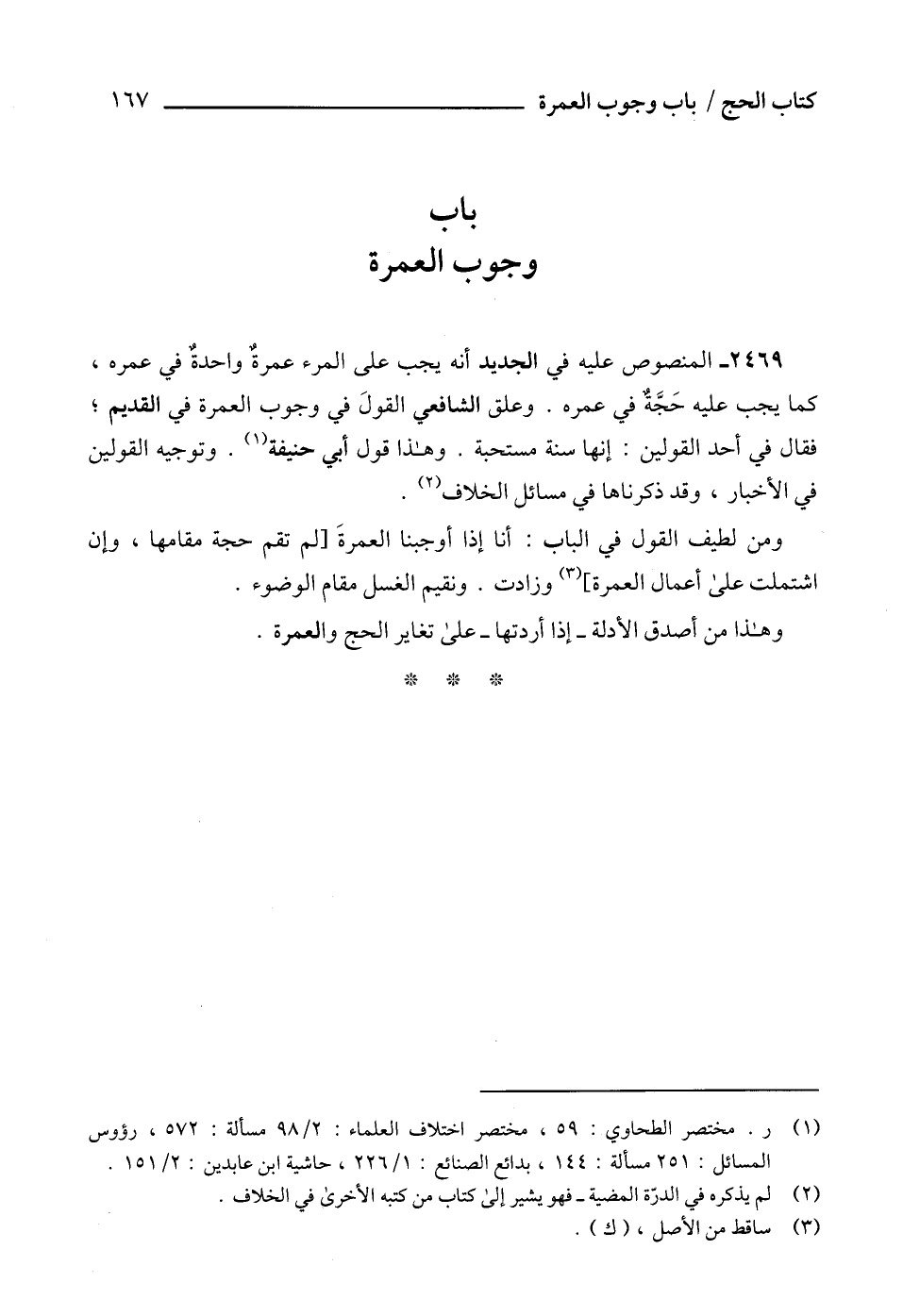 (1) ر. مختصر الطحاوي: 59، مختصر اختلاف العلماء: 2/ 98 مسألة: 572، رؤوس المسائل: 251 مسألة: 144، بدائع الصنائع: 1/ 226، حاشية ابن عابدين: 2/ 151.