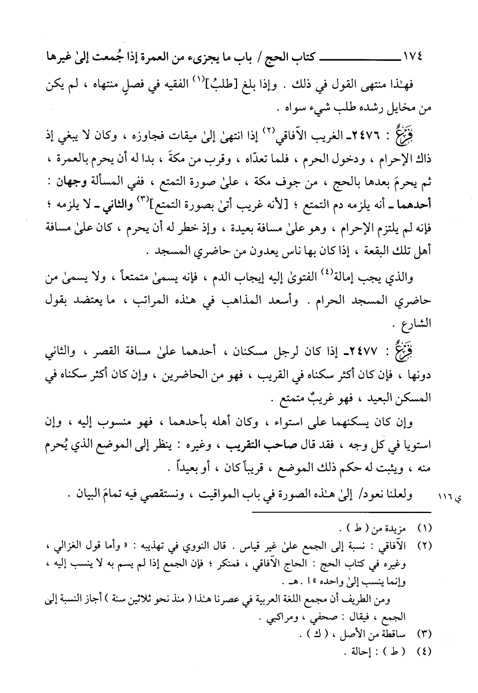 والذي يجب إمالة (4) الفتوى إليه إيجاب الدم، فإنه يسمى متمتعاًً، ولا يسمى من حاضري المسجد الحرام. وأسعد المذاهب في هذه المراتب، ما يعتضد بقول الشارع.