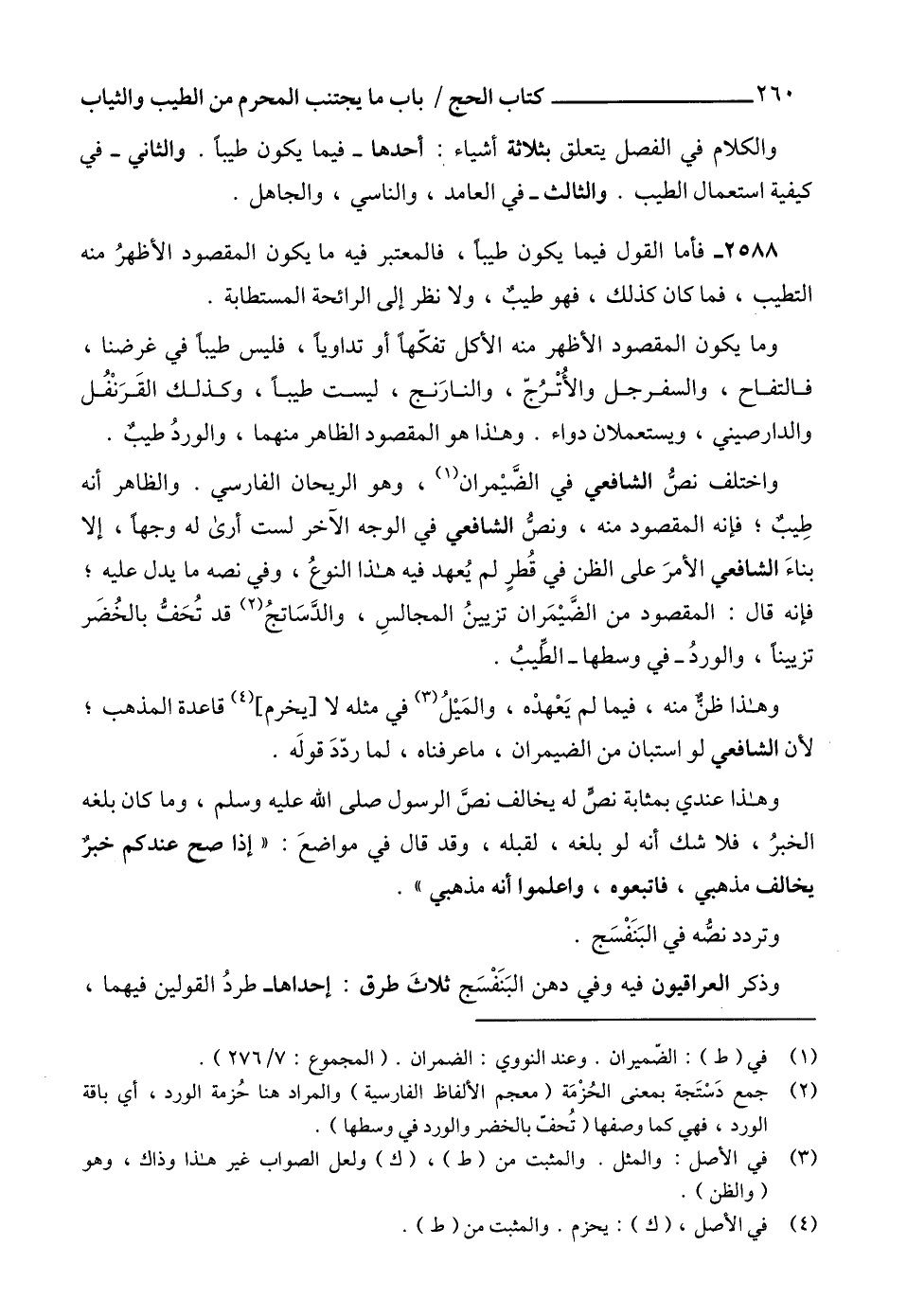 وذكر العراقيون فيه وفي دهن البَنَفْسَج ثلاثَ طرق: إحداها - طردُ القولين فيهما،