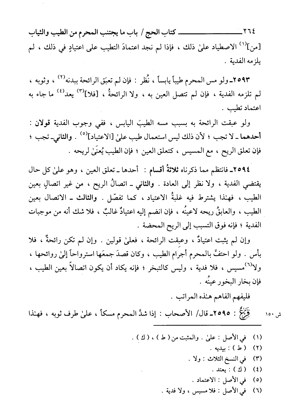2595 - قال الأصحاب: إذا شدَّ المحرم مسكاً، على طرف ثوبه، فهذا