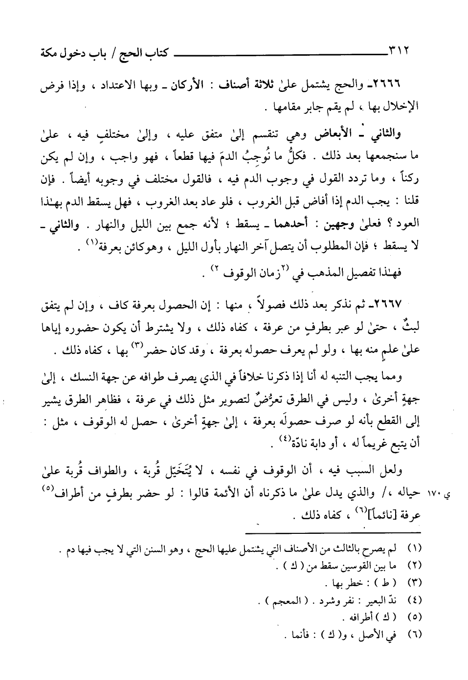2667 - ثم نذكر بعد ذلك فصولاً، منها: إن الحصول بعرفة كاف، وإن لم يتفق لبثٌ، حتى لو عبر بطرفٍ من عرفة، كفاه ذلك، ولا يشترط أن يكون حضوره إياها على علمٍ منه بها، ولو لم يعرف حصوله بعرفة، وقد كان حضر (3) بها، كفاه ذلك.