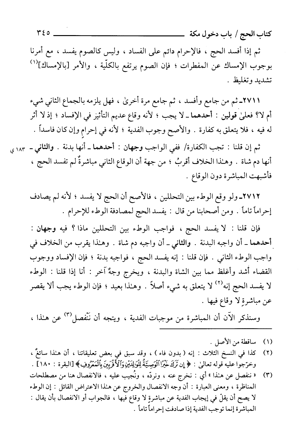 وسنذكر الآن أن المباشرة من موجبات الفدية، ويتجه أن نَنْفصل (3) عن هذا،