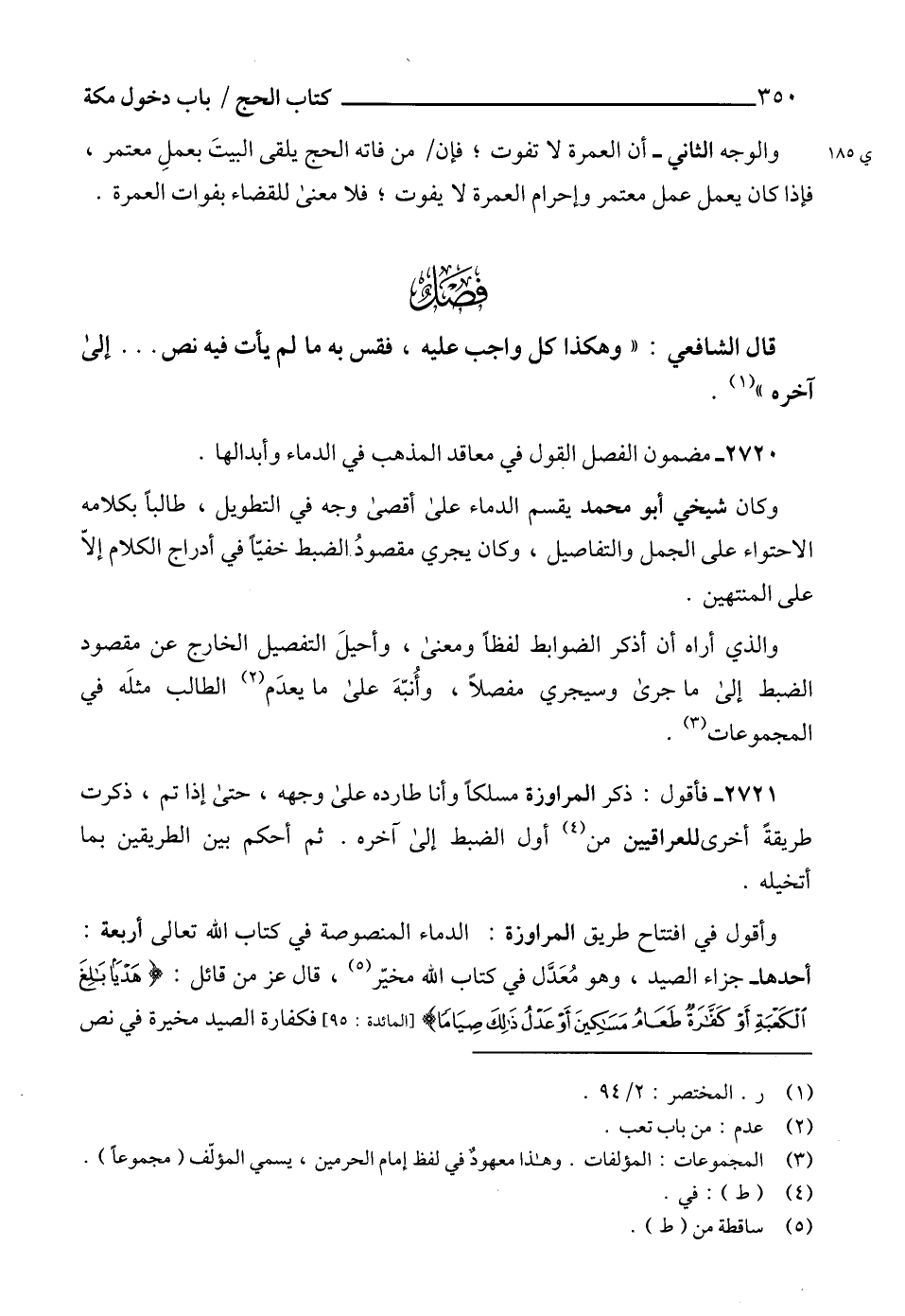 2720 - مضمون الفصل القول في معاقد المذهب في الدماء وأبدالها.