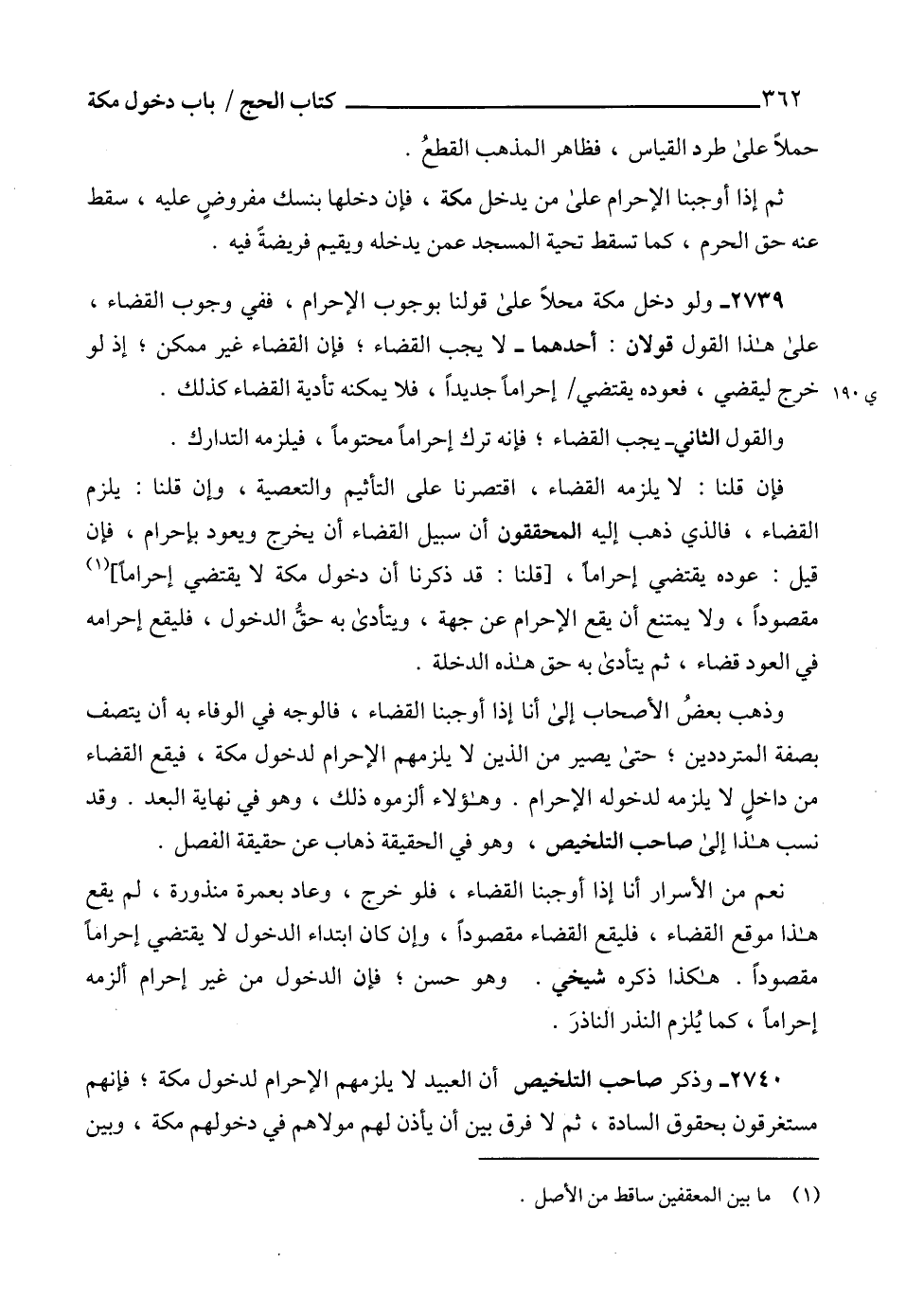 2740 - وذكر صاحب التلخيص أن العبيد لا يلزمهم الإحرام لدخول مكة؛ فإنهم مستغرقون بحقوق السادة، ثم لا فرق بين أن يأذن لهم مولاهم في دخولهم مكة، وبين