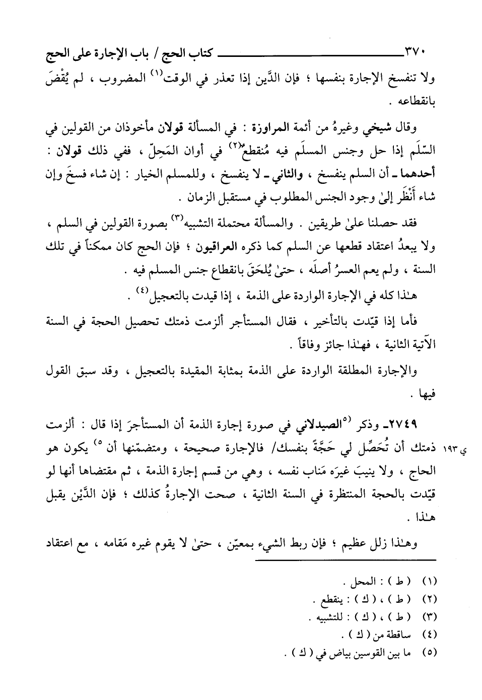 2749 - وذكر (5 الصيدلاني في صورة إجارة الذمة أن المستأجرَ إذا قال: ألزمت ذمتك أن تُحَصِّل لي حَجَّة بنفسك فالإجارة صحيحة، ومتضمّنها أن 5) يكون هو الحاج، ولا ينيبَ غيرَه مَناب نفسه، وهي من قسم إجارة الذمة، ثم مقتضاها أنها لو قيّدت بالحجة المنتظرة في السنة الثانية، صحت الإجارةُ كذلك؛ فإن الدَّيْن يقبل هذا.