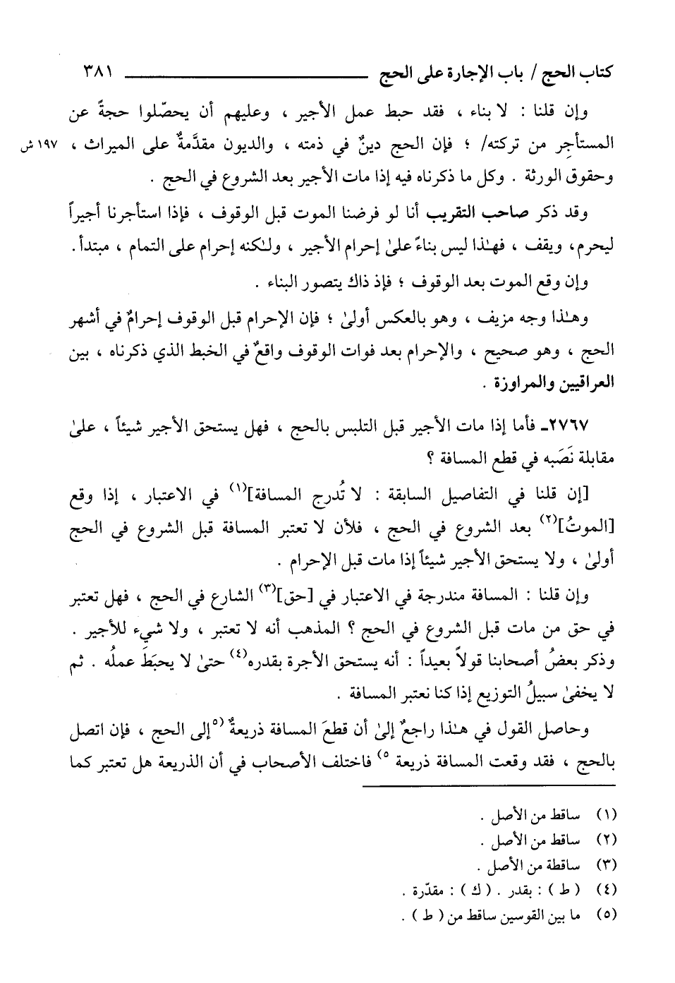 وقد ذكر صاحب التقريب أنا لو فرضنا الموت قبل الوقوف، فإذا استأجرنا أجيراً ليحرم، ويقف، فهذا ليس بناءً على إحرام الأجير، ولكنه إحرام على التمام، مبتدأ.