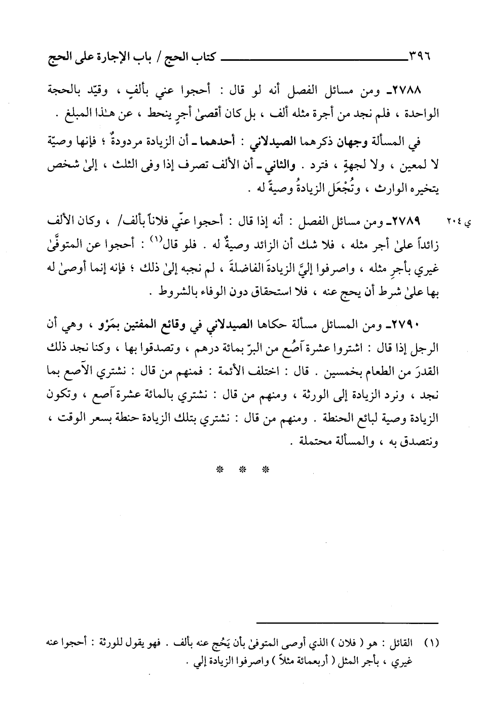 (1) القائل: هو (فلان) الذي أوصى المتوفى بأن يَحُج عنه بألف. فهو يقول للورثة: أحجوا عنه غيري، بأجر المثل (أربعمائة مثلاً) واصرفوا الزيادة إلي.