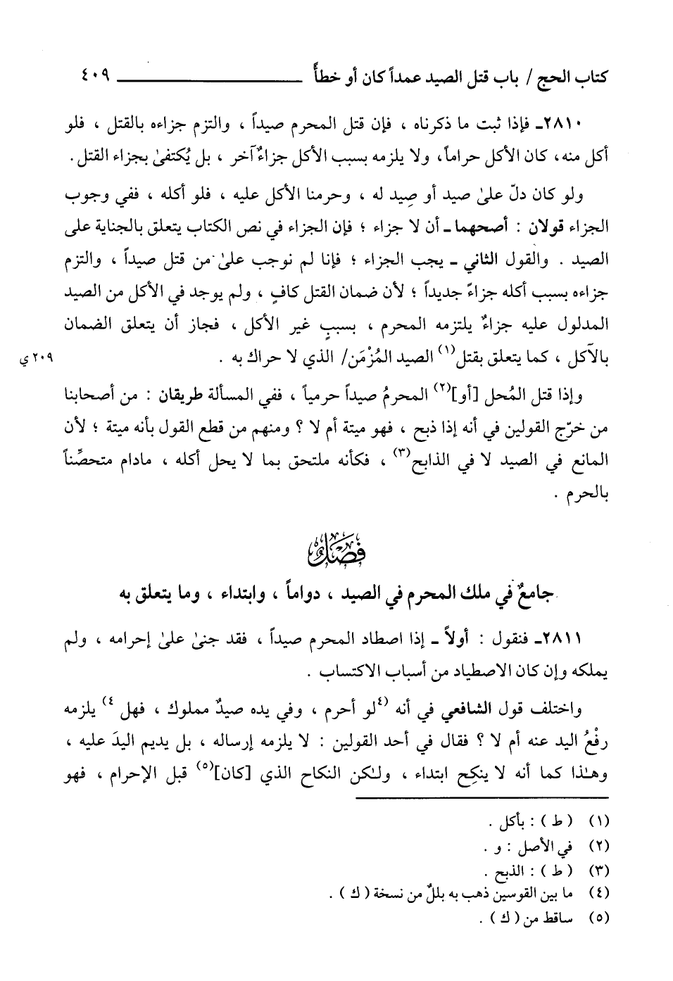 جامعٌ في ملك المحرم في الصيد، دواماً، وابتداء، وما يتعلق به