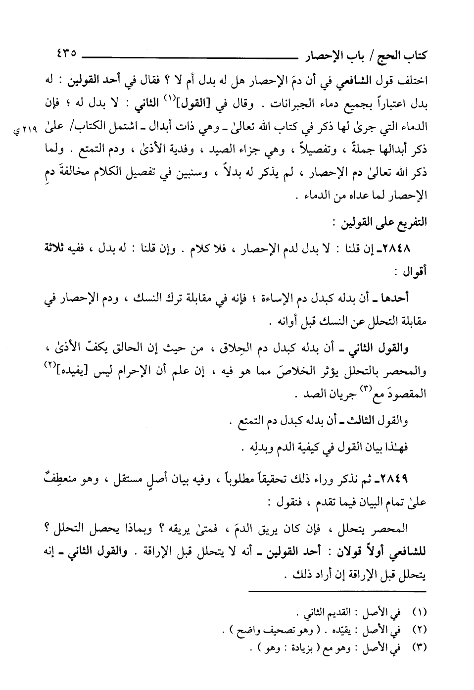 2848 - إن قلنا: لا بدل لدم الإحصار، فلا كلام. وإن قلنا: له بدل، ففيه ثلاثة أقوال: