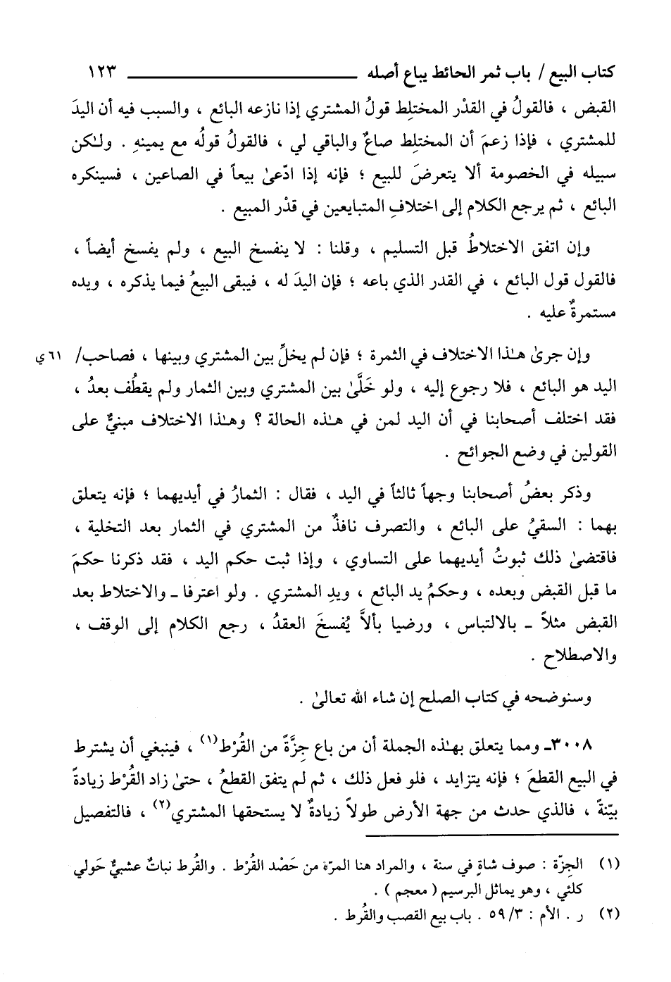 (2) ر. الأم: 3/ 59. باب بيع القصب والقُرط.