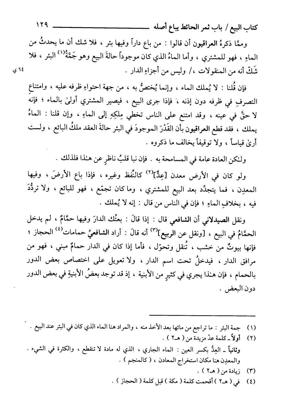(1) جمة البئر: ما تراجع من مائها بعد الأخذ منه، والمراد هنا الماء الذي كان في البئر عند البيع.