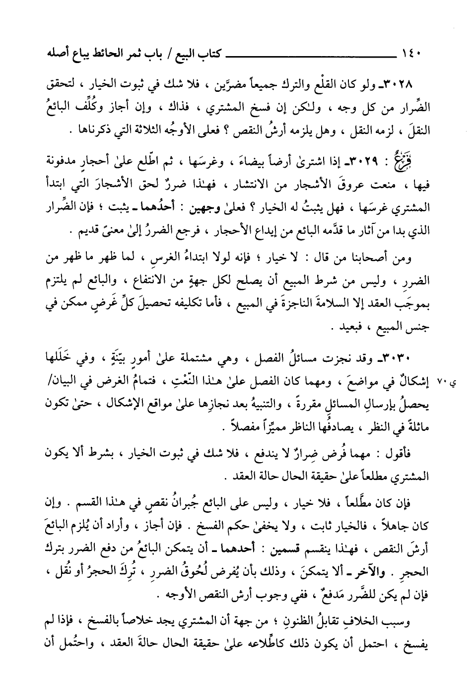 3030 - وقد نجزت مسائلُ الفصل، وهي مشتملة على أمورٍ بيّنَةٍ، وفي خَلَلها إشكالٌ في مواضعَ، ومهما كان الفصل على هذا النّعْتِ، فتمامُ الغرض في البيان يحصلُ بإرسالِ المسائلِ مقررةً، والتنبيهُ بعد نجازِها على مواقع الإشكال، حتى تكون ماثلة في النظر، يصادفُها الناظر مميزاً مفصلاً.