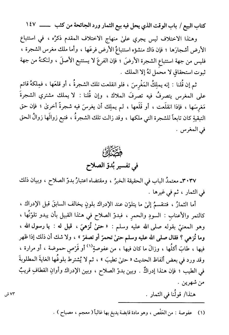 3037 - معتمدُ الباب في الحقيقة الخبرُ، ومقتضاه اعتبارُ بدوّ الصلاح، وبيان ذلك في الثمار، ثم في غيرها.