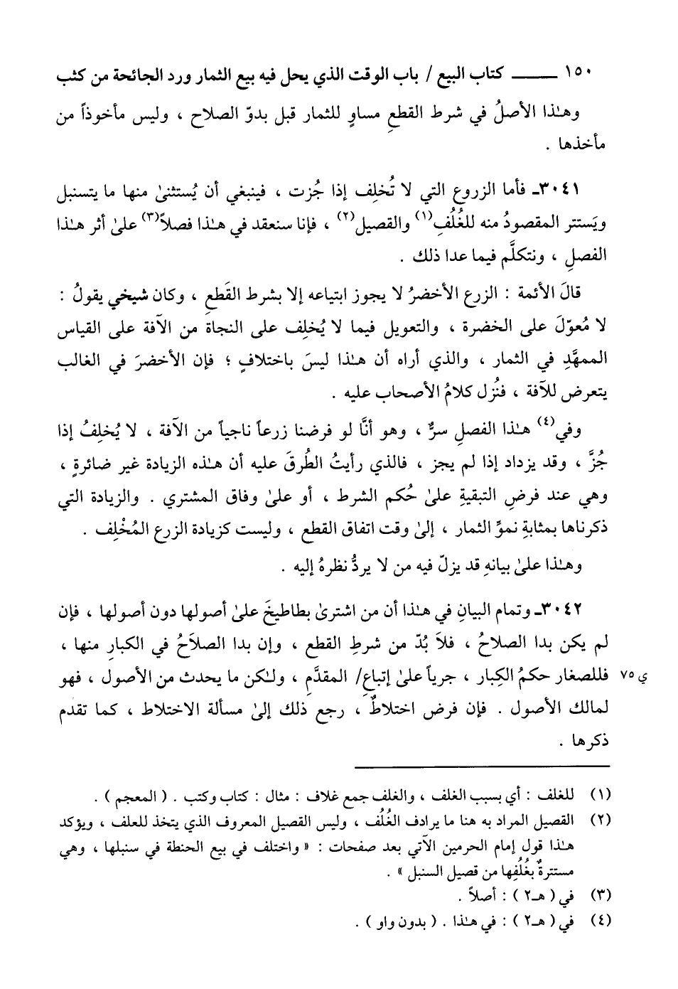 (2) القصيل المراد به هنا ما يرادف الغُلُف، وليس القصيل المعروف الذي يتخذ للعلف، ويؤكد هذا قول إمام الحرمين الآتي بعد صفحات: "واختلف في بيع الحنطة في سنبلها، وهي مستترةٌ بغُلُفِها من قصيل السنبل".