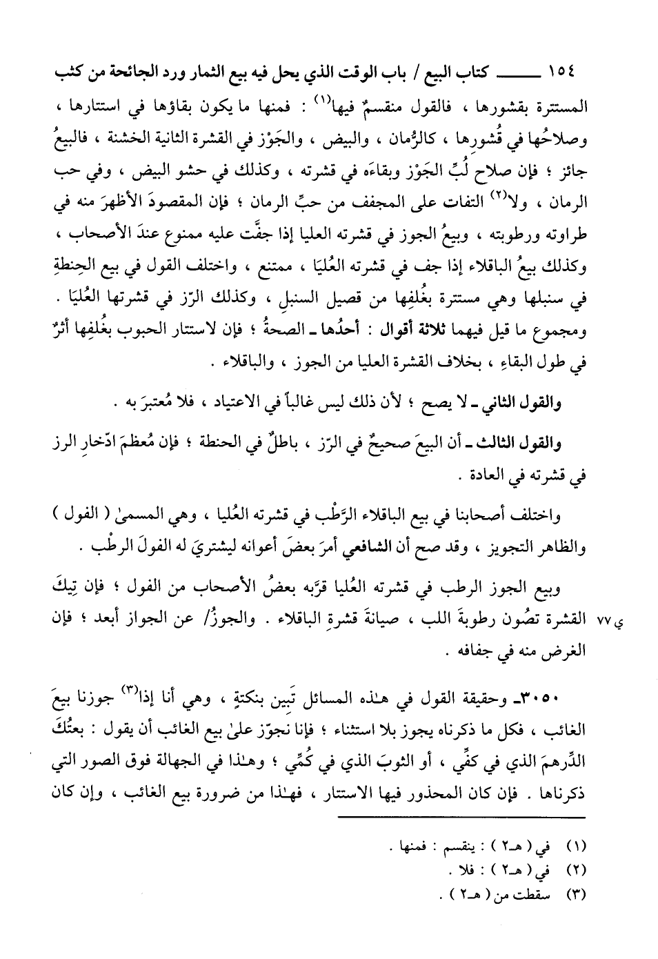 وبيع الجوز الرطب في قشرته العُليا قرَّبه بعضُ الأصحاب من الفول؛ فإن تِيكَ القشرة تصُون رطوبةَ اللب، صيانةَ قشرةِ الباقلاء. والجوزُ عن الجواز أبعد؛ فإن الغرض منه في جفافه.