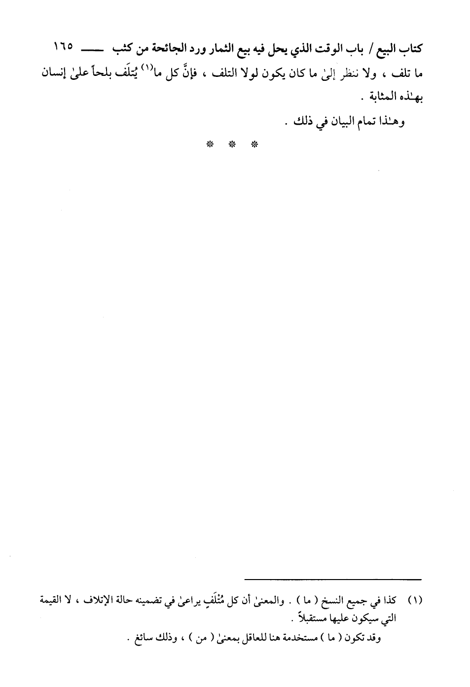 (1) كذا في جميع النسخ (ما). والمعنى أن كل مُتْلَفٍ يراعى في تضمينه حالة الإتلاف، لا القيمة التي سيكون عليها مستقبلاً.