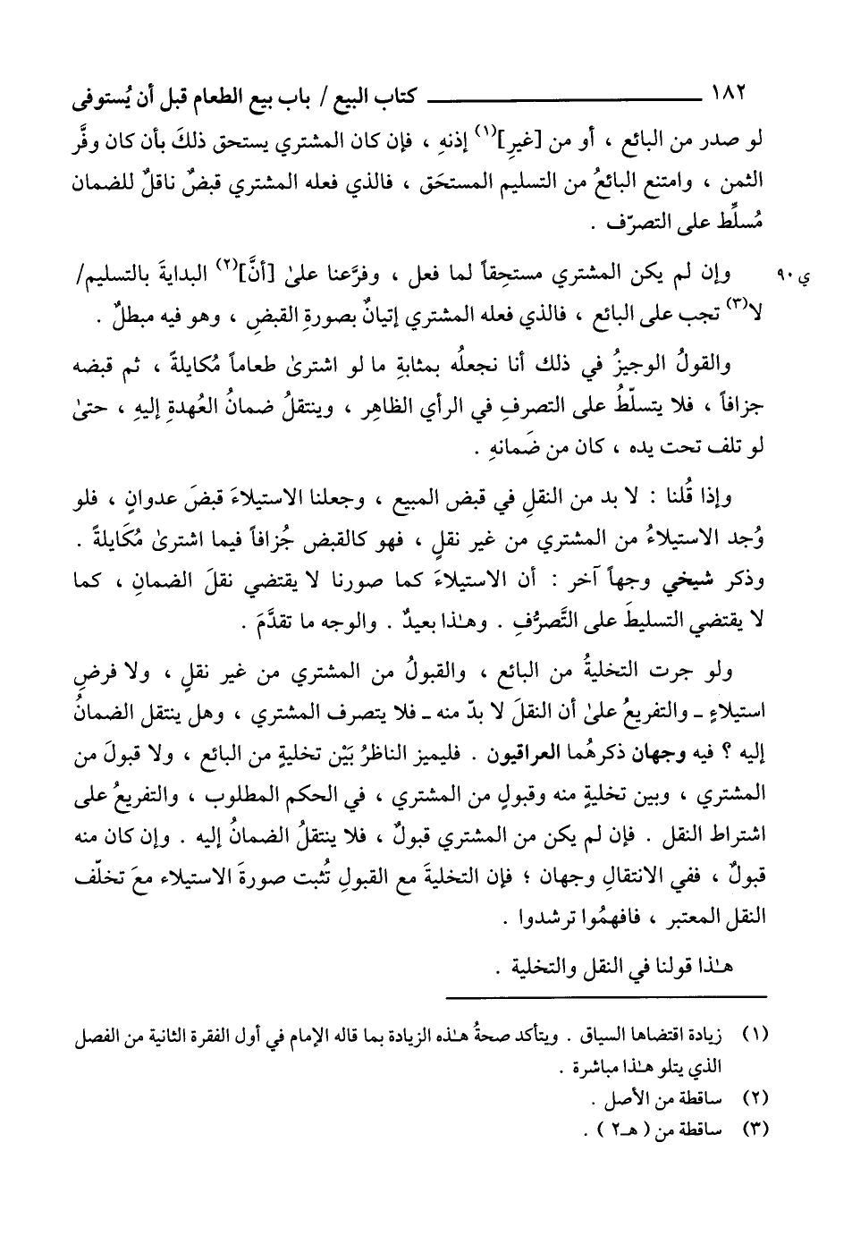 (1) زيادة اقتضاها السياق. ويتأكد صحةُ هذه الزيادة بما قاله الإمام في أول الفقرة ويتأكد من الفصل الذي يتلو هذا مباشرة.