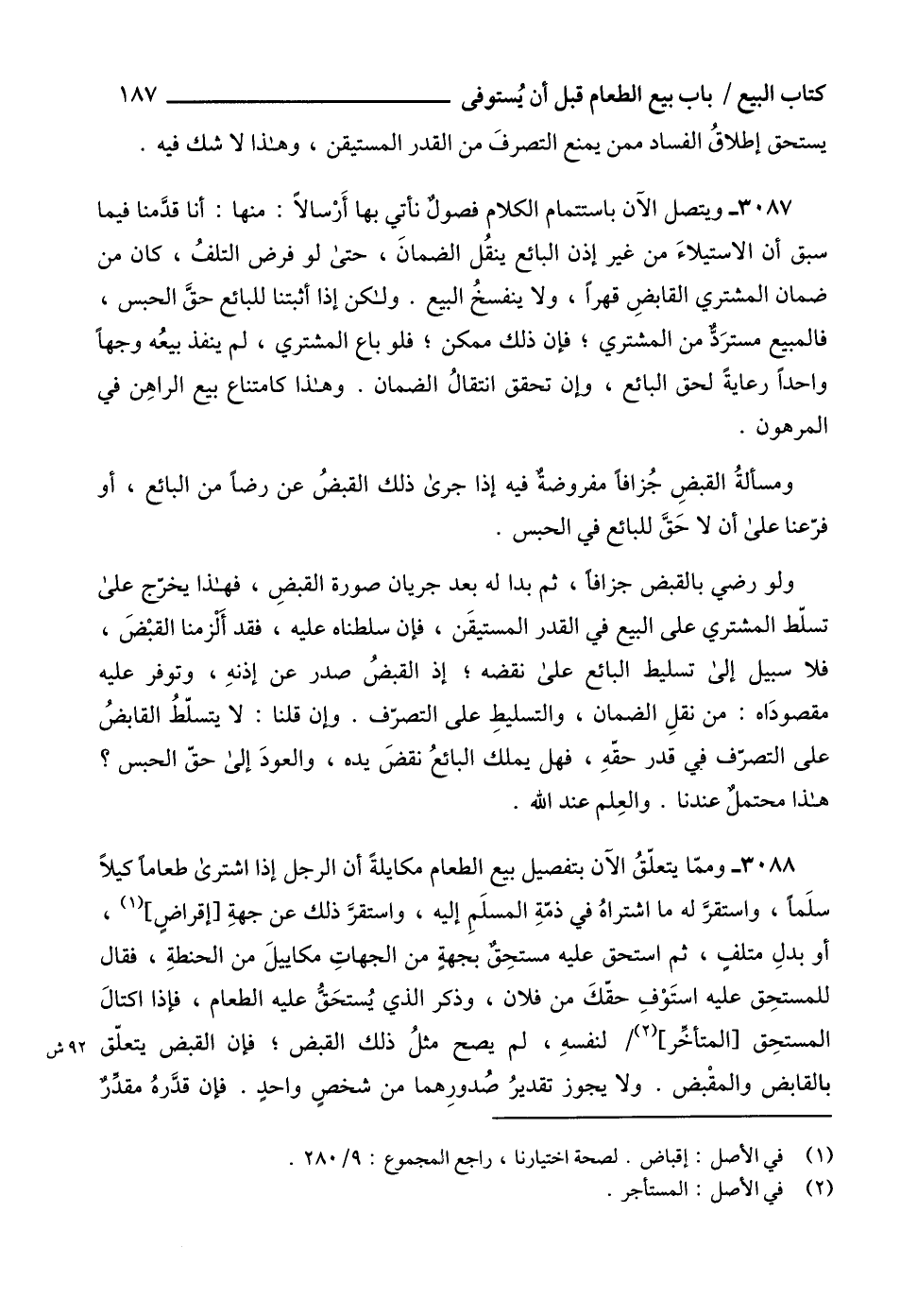 (1) في الأصل: إقباض. لصحة اختيارنا، راجع المجموع: 9/ 280.