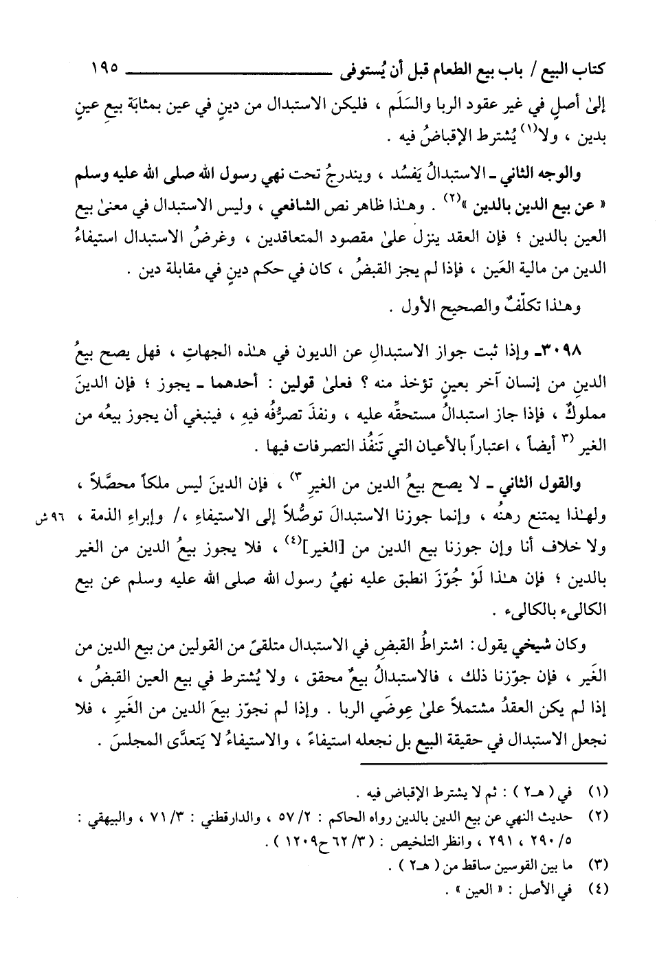 (2) حديث النهي عن بيع الدين بالدين رواه الحاكم: 2/ 57، والدارقطني: 3/ 71، والبيهقي: 5/ 290، 291، وانظر التلخيص: (3/ 62 ح 1209).