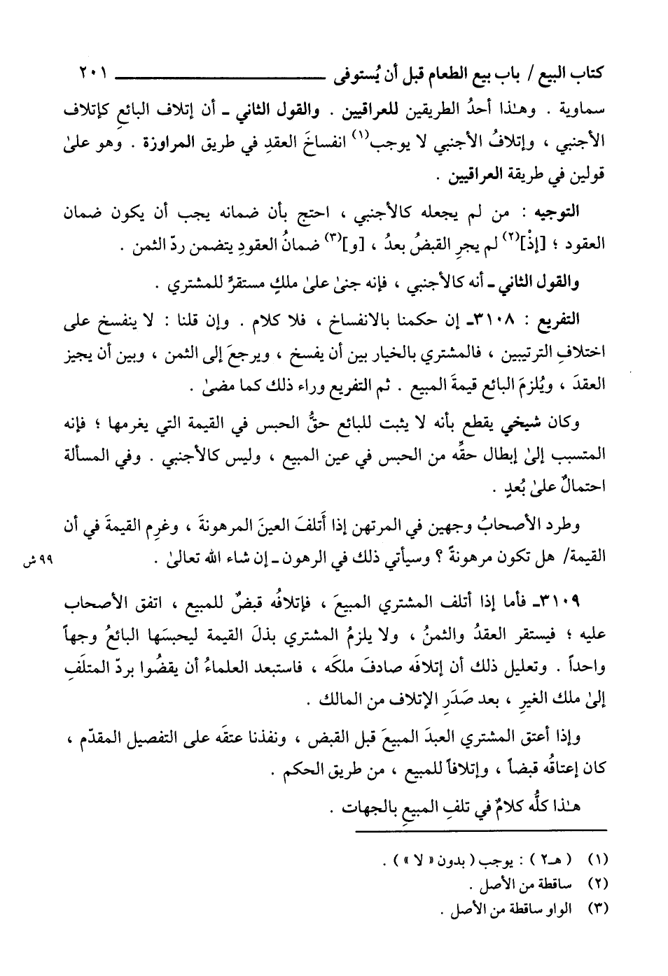 سماوية. وهذا أحدُ الطريقين للعراقيين. والقول الثاني - أن إتلاف البائعِ كإتلاف الأجنبي، وإتلافُ الأجنبي لا يوجب (1) انفساخَ العقدِ في طريق المراوزة. وهو على قولين في طريقة العراقيين.