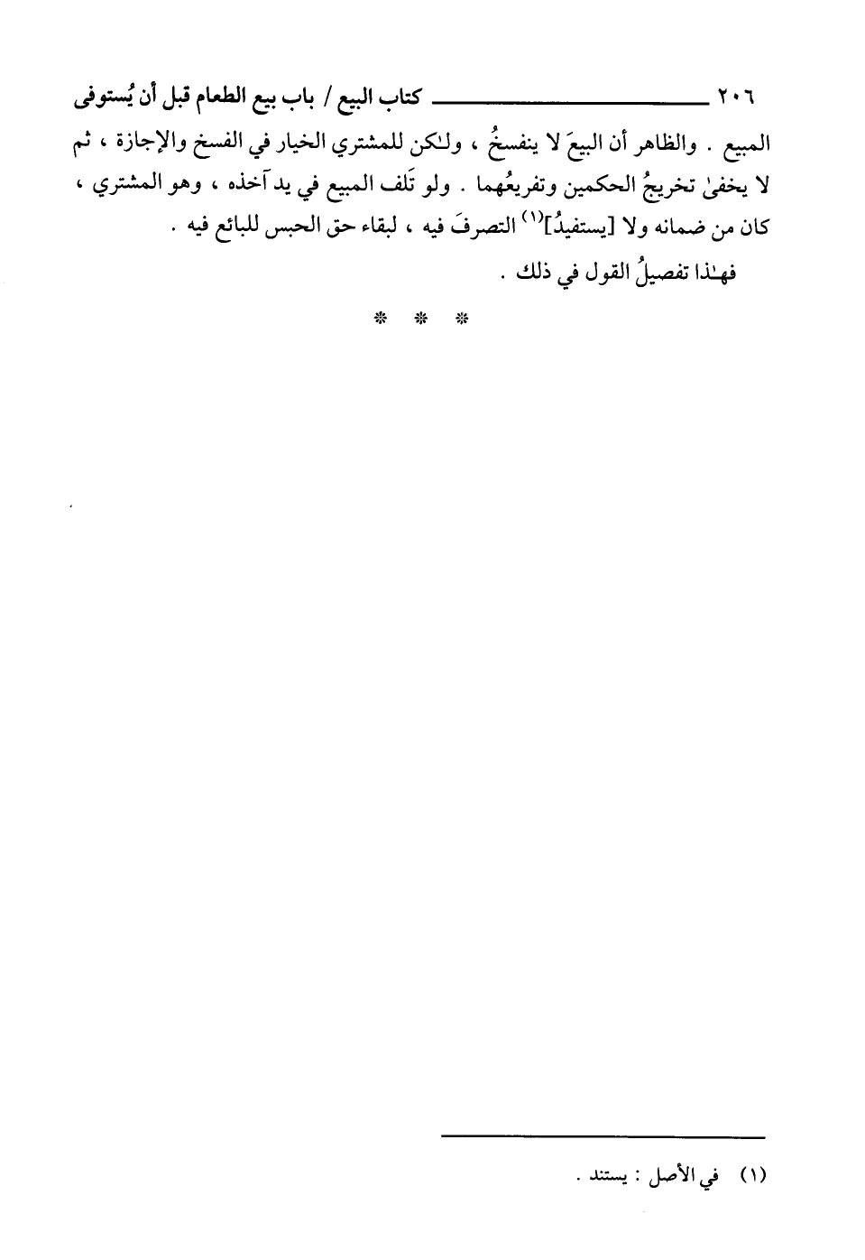 المبيع. والظاهر أن البيعَ لا ينفسخُ، ولكن للمشتري الخيار في الفسخ والإجازة، ثم لا يخفى تخريجُ الحكمين وتفريعُهما. ولو تَلف المبيع في يد آخذه، وهو المشتري، كان من ضمانه ولا [يستفيدُ] (1) التصرفَ فيه، لبقاء حق الحبس للبائع فيه.