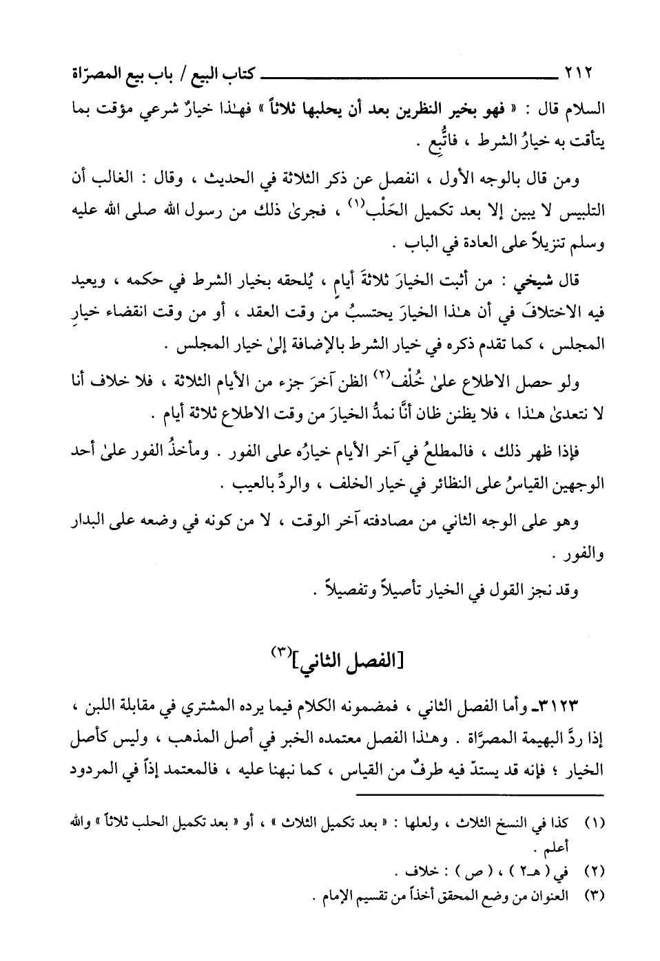 السلام قال: " فهو بخير النظرين بعد أن يحلبها ثلاثاً " فهذا خيارٌ شرعي مؤقت بما يتأقت به خيارُ الشرط، فاتُّبِع.