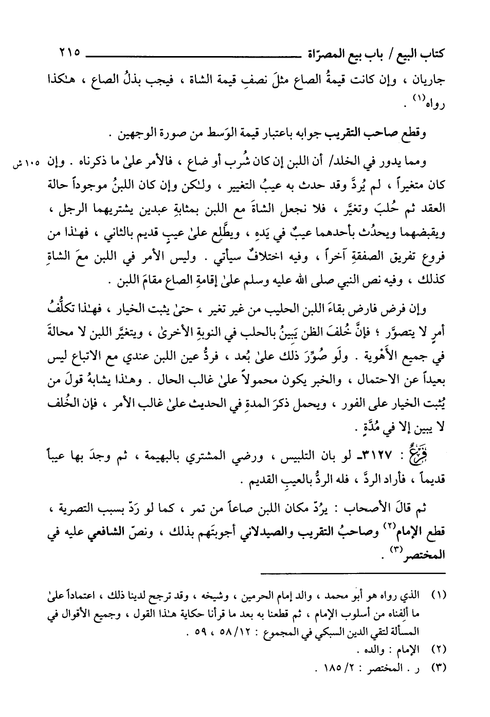 وإن فرض فارض بقاءَ اللبن الحليب من غير تغير، حتى يثبت الخيار، فهذا تكلُّفُ أمرٍ لا يتصوَّر؛ فإنَ خُلفَ الظن يَبينُ بالحلب في النوبةِ الأخرى، ويتغيَّر اللبن لا محالةَ في جميع الأَهْوية. ولَو صُوِّرَ ذلَك على بُعد، فردُّ عين اللبن عندي مع الاتباع ليس بعيداً عن الاحتمال، والخبر يكون محمولاً على غالب الحال. وهذا يشابهُ قولَ من يُثبت الخيار على الفور، ويحمل ذكرَ المدةِ في الحديث على غالب الأمر، فإن الخُلف لا يبين إلا في مُدَّةٍ.