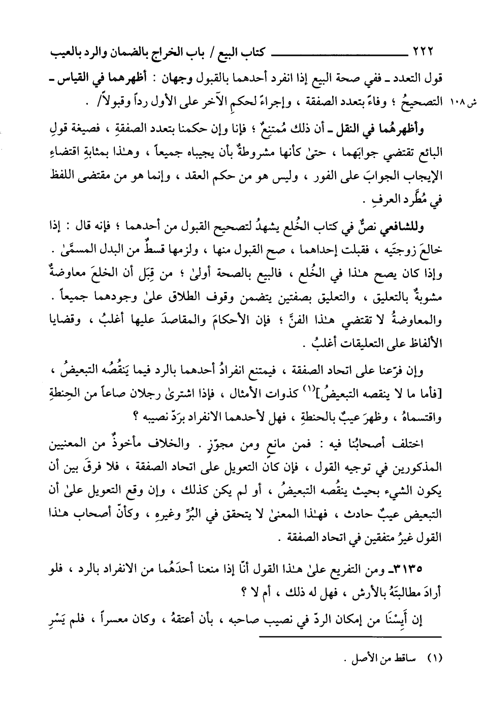 3135 - ومن التفريع على هذا القول أنّا إذا منعنا أحدَهُما من الانفراد بالرد، فلو أرادَ مطالبتَهُ بالأرش، فهل له ذلك، أم لا؟