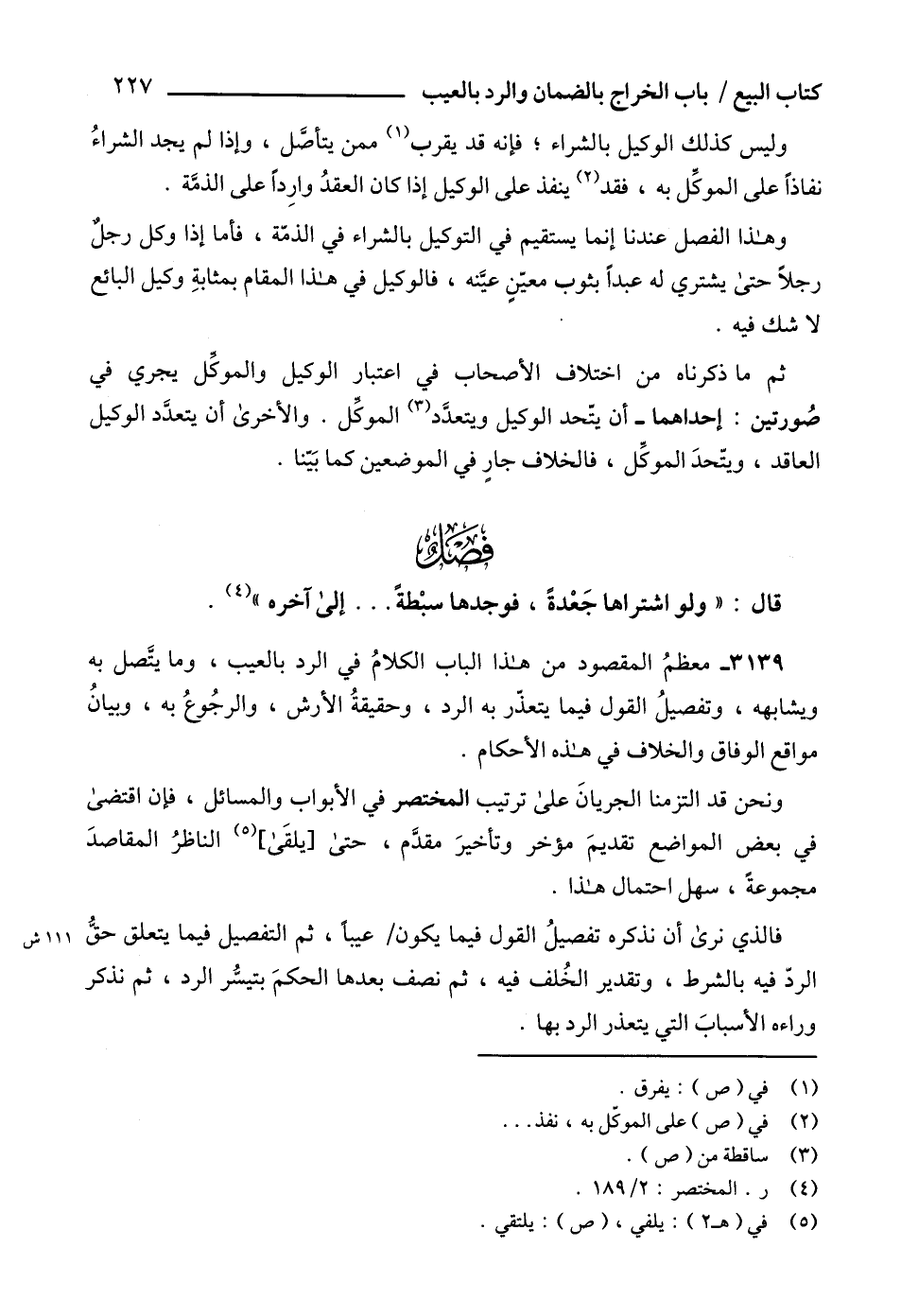 3139 - معظمُ المقصود من هذا الباب الكلامُ في الرد بالعيب، وما يتَّصل به ويشابهه، وتفصيلُ القول فيما يتعذّر به الرد، وحقيقةُ الأرش، والرجُوعُ به، وبيانُ مواقع الوفاق والخلاف في هذه الأحكام.