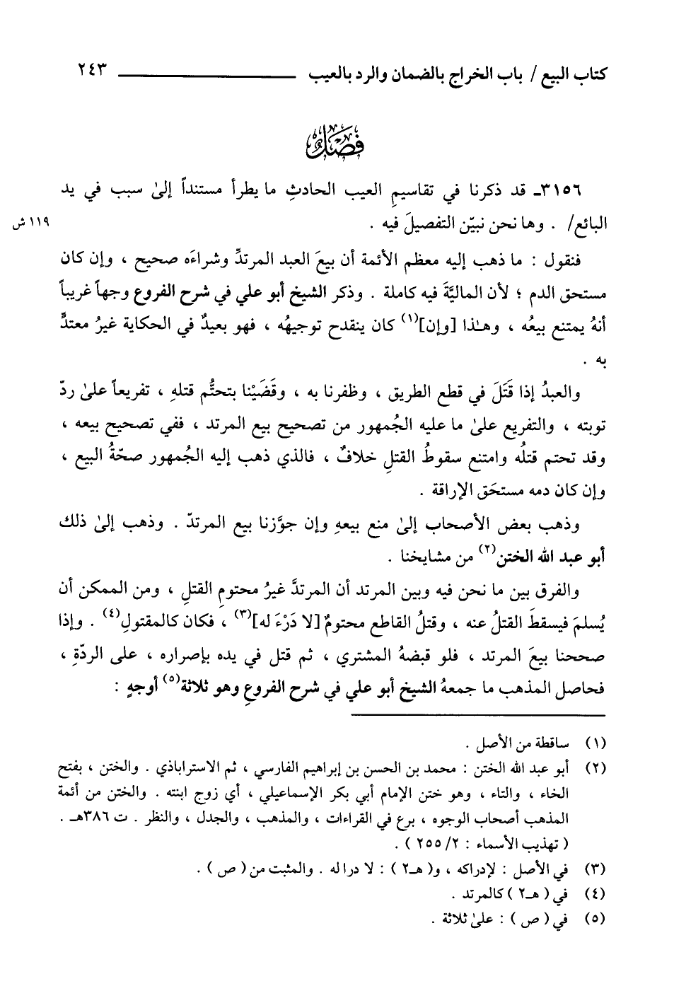 3156 - قد ذكرنا في تقاسيمِ العيب الحادثِ ما يطرأ مستنداً إلى سبب في يد البائع. وها نحن نبيّن التفصيلَ فيه.