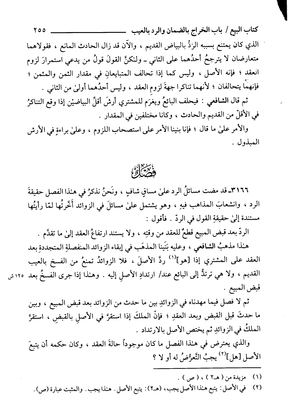 3166 - قد مضت مسائلُ الرد على مساقٍ شافٍ، ونَحنُ نذكرُ في هذا الفصل حقيقةَ الرد، وانشعابَ المذاهب فيهِ، وهو يشتمل على مسائلَ في الزوائد أَخَّرتُها لمّا رأيتُها مستندة إلى حقيقةِ القول في الردّ. فأقول: