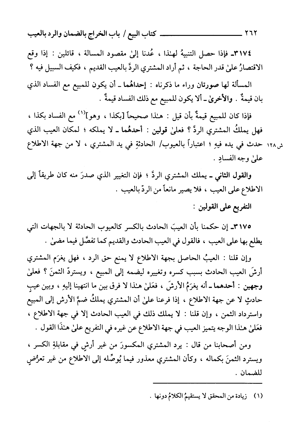 3174 - فإذا حصل التنبيهُ لهذا، عُدنا إلى مقصود المسألة، قائلين: إذا وقع الاقتصارُ على قدر الحاجة، ثم أراد المشتري الردَّ بالعيب القديم، فكيف السبيل فيه؟