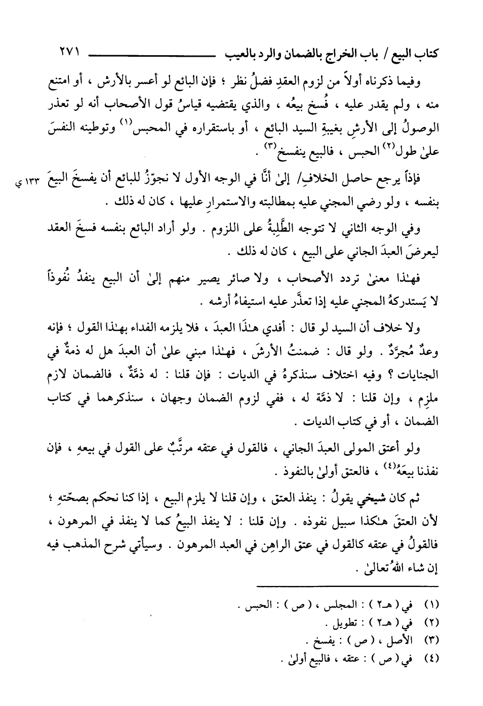 فهذا معنى تردد الأصحاب، ولا صائر يصير منهم إلى أن البيع ينفدُ نُفوذاً لا يَستدركهُ المجني عليه إذا تعذر عليه استيفاءُ أرشه.