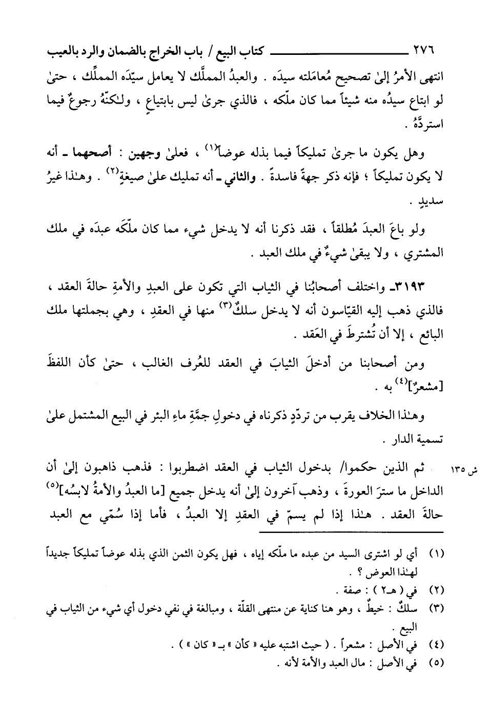 3193 - واختلف أصحابُنا في الثياب التي تكون على العبدِ والأمةِ حالةَ العقد، فالذي ذهب إليه القيّاسون أنه لا يدخل سلكُ (3) منها في العقدِ، وهي بجملتها ملك البائع، إلا أن تُشترطَ في العَقد.