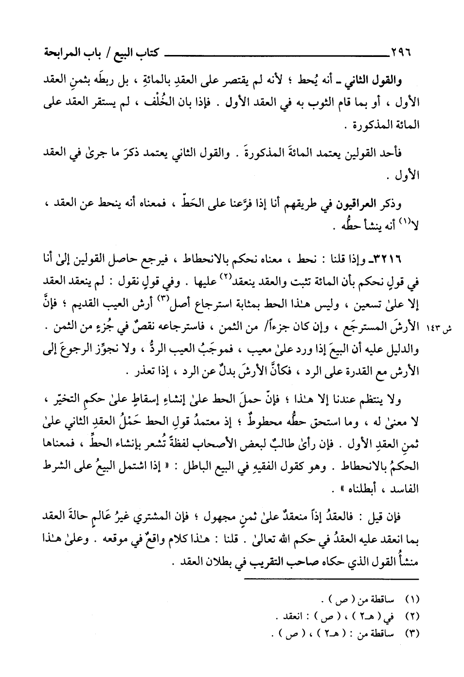 ولا ينتظم عندنا إلا هذا؛ فإنّ حملَ الحط على إنشاءِ إسقاطٍ على حكمِ التخيّر، لا معنى له، وما استحق حطُّه محطوطٌ؛ إذ معتمدُ قولِ الحط حَمْلُ العقدِ الثاني على ثمنِ العقدِ الأول. فإن رأى طالبٌ لبعض الأصحاب لفظةً تُشعر بإنشاء الحطِّ، فمعناها الحكمُ بالانحطاط. وهو كقول الفقيهِ في البيع الباطل: "إذا اشتمل البيعُ على الشرط الفاسد، أبطلناه".