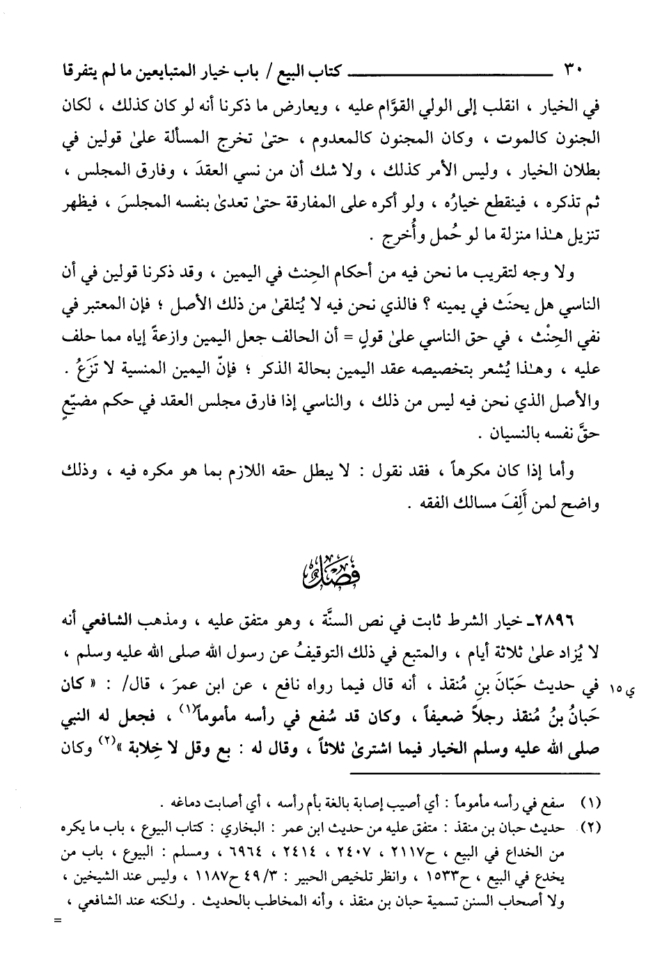 (2) حديث حبان بن منقذ: متفق عليه من حديث ابن عمر: البخاري: كتاب البيوع، باب ما يكره من الخداع في البيع، ح2117، 2407، 2414، 6964، ومسلم: البيوع، باب من يخدع في البيع، ح 1533، وانظر تلخيص الحبير: 3/ 49 ح 1187، وليس عند الشيخين، ولا أصحاب السنن تسمية حبان بن منقذ، وأنه المخاطب بالحديث. ولكنه عند الشافعي، =