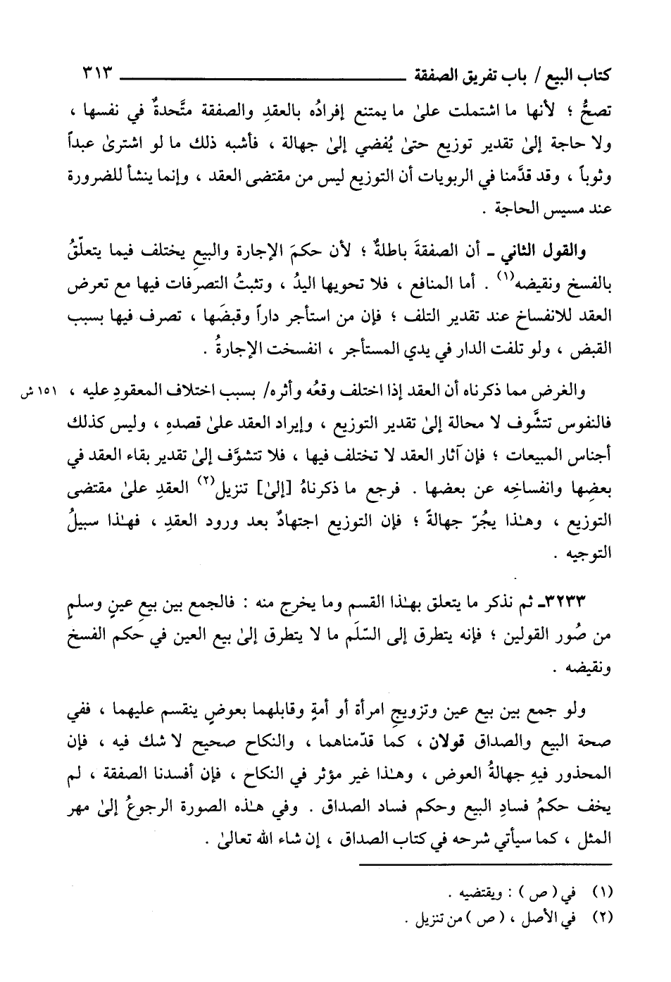 3233 - ثم نذكر ما يتعلق بهذا القسم وما يخرج منه: فالجمع بين بيعِ عينٍ وسلمٍ من صُور القولين؛ فإنه يتطرق إلى السّلَم ما لا يتطرق إلى بيع العين في حكم الفسخ ونقيضه.
