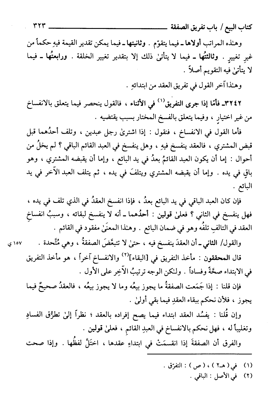 3242 - فأمّا إذا جرى التفريق (1) في الأثناء، فالقول ينحصر فيما يتعلق بالانفساخ من غير اختيارٍ، وفيما يتعلق بالفسخ المختار بسبب يقتضيه.