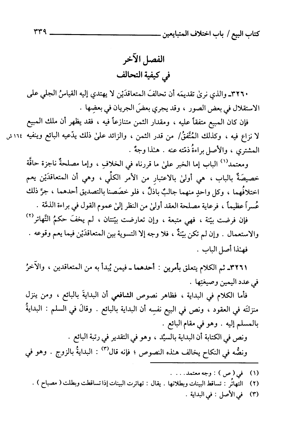 3261 - ثم الكلام يتعلق بأمرين: أحدهما - فيمن يُبدأ به من المتعاقدين، والآخرُ في عدد اليمين وصيغتِها.