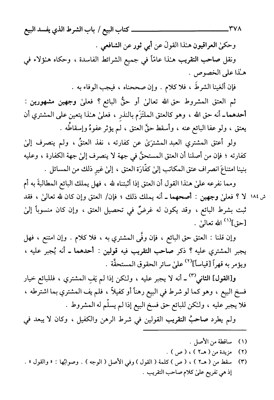 (3) سقط من (هـ 2)، (ص) كلمة (القول) وفي الأصل (الوجه). وصوابُها: "والقول". إذ هي تفريع على كلام صاحب التقريب.