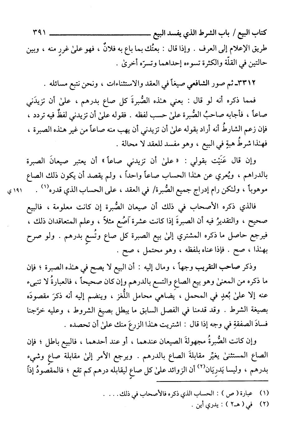 فمما ذكره أنه لو قال: بعني هذه الصُّبرةَ كل صاع بدرهم، على أن تزيدَني صاعاً، فأجابه صاحبُ الصُّبرة على حسب لفظه. فقوله على أن تزيدني لفظٌ فيه تردد، فإن زعم الشارطُ أنه أراد بقوله على أن تزيدني أن يهب منه صاعاً من غير هذه الصبرة، فهذا شرطُ هبةٍ في البيع، وهو مفسد للعقد لا محالة.