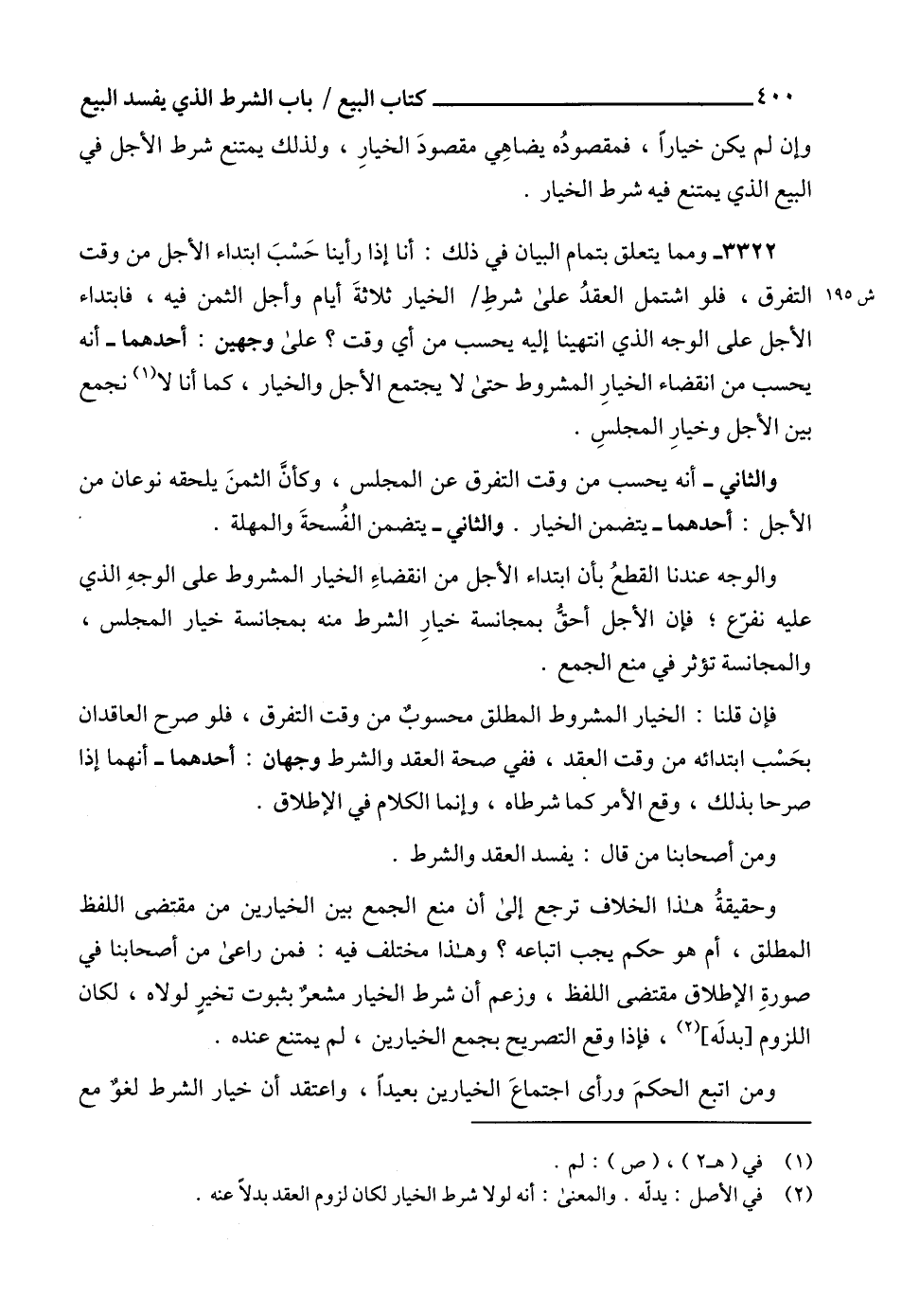 ومن اتبع الحكمَ ورأى اجتماعَ الخيارين بعيداً، واعتقد أن خيار الشرط لغوٌ مع