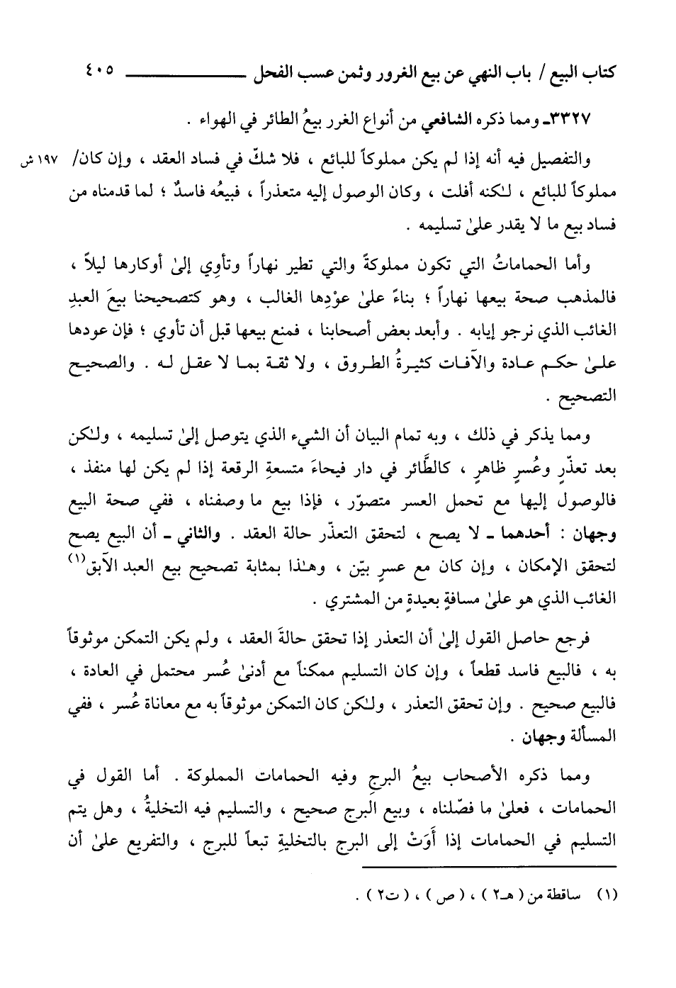 3327 - ومما ذكره الشافعي من أنواع الغرر بيعُ الطائر في الهواء.