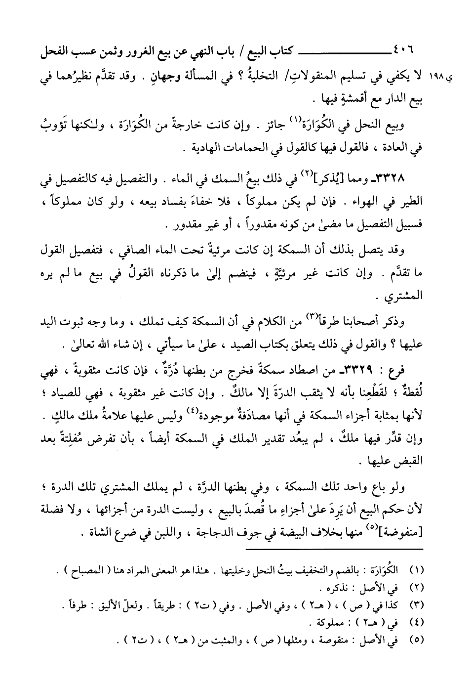 3328 - ومما [يُذكر] (2) في ذلك بيعُ السمك في الماء. والتفصيل فيه كالتفصيل في الطير في الهواء. فإن لم يكن مملوكاً، فلا خفاءَ بفساد بيعه، ولو كان مملوكاً، فسبيل التفصيل ما مضى من كونه مقدوراً، أو غير مقدور.